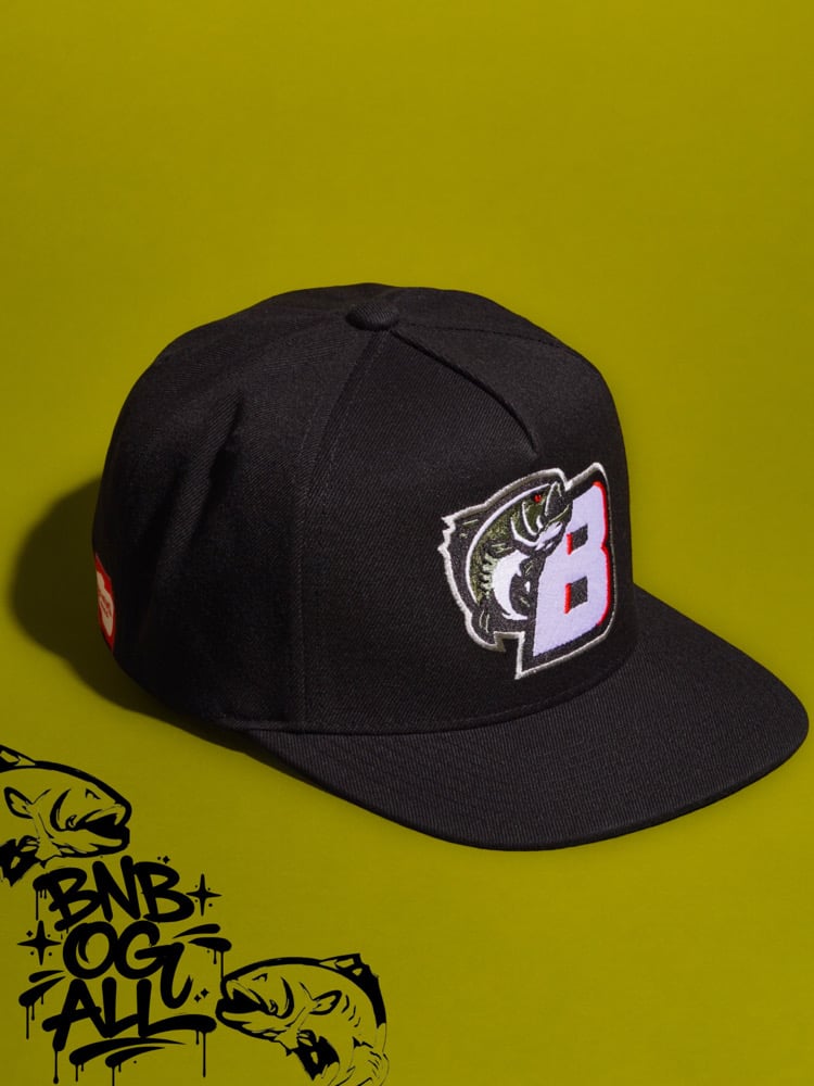 All-black crown, finished with the iconic B-logo in its original embroidered form. Snapback closure for a clean, adjustable fit, plus a red label hit on the back to seal it.